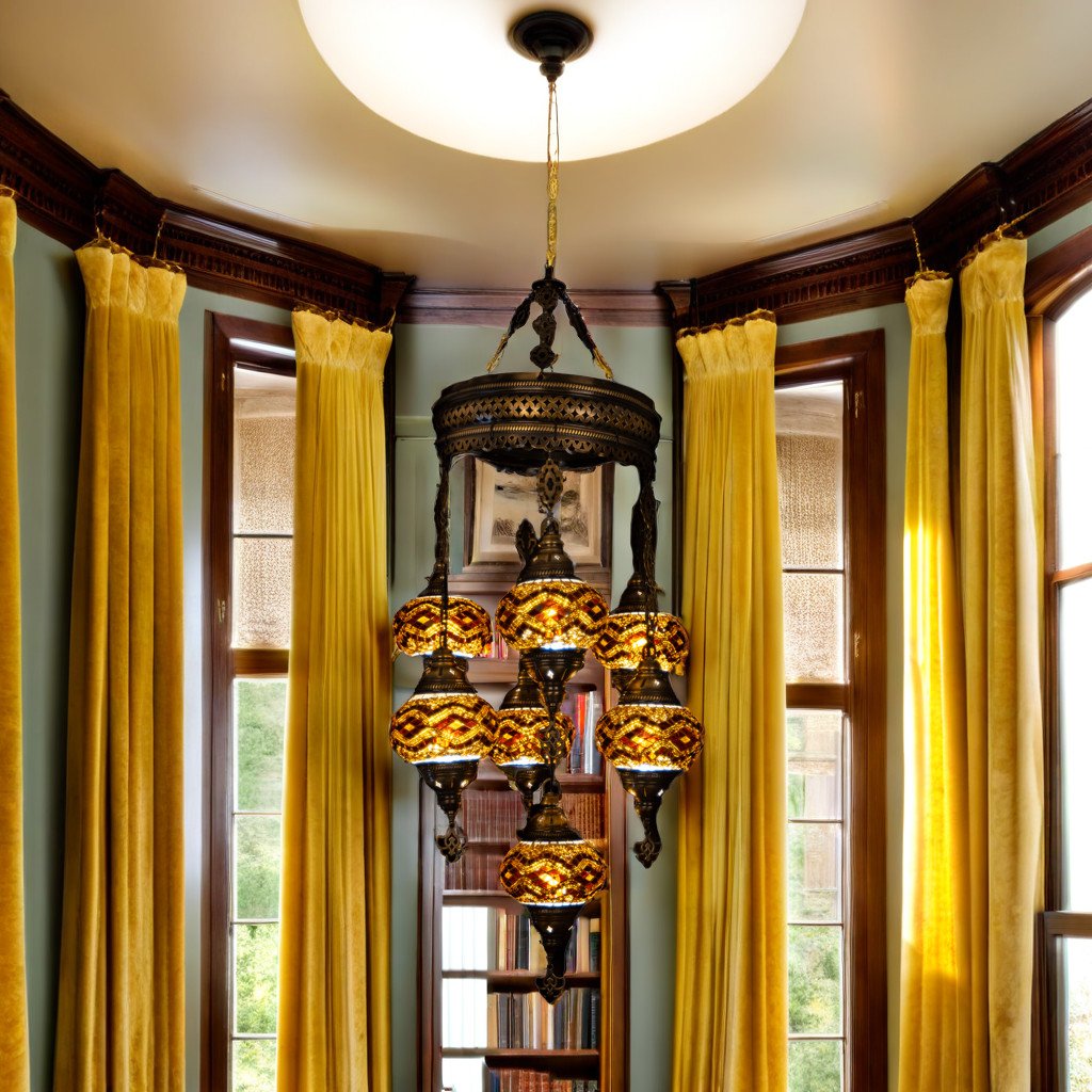 This elegant 7 Globe Chandelier (6″ Globes) has been handcrafted by skillful Turkish artisans. Stunning patterns are created with hand-cut mosaic glass and beads on the globes. Being handcrafted, the beauty in design lies in the minor differences while patterning the globes. You can customize these chandeliers according to your preference by choosing all identical globes or create a unique look by mixing and matching the globes to create your own combination. All chandeliers require E12 base chandelier bulbs (Not inclusive, however, you have the option of adding 7 x 4 watt, 2700K, E12 base LED chandelier bulbs to your quote). These Chandeliers are 110 V and are suitable for use in Canada and USA. The are inclusive of an on-off switch and can be plugged into a wall socket. Alternatively, they can also be hardwired into the ceiling. ( Mounting hardware is not included).