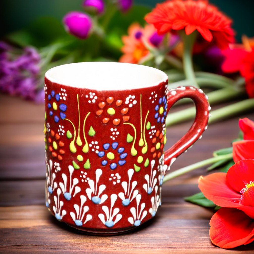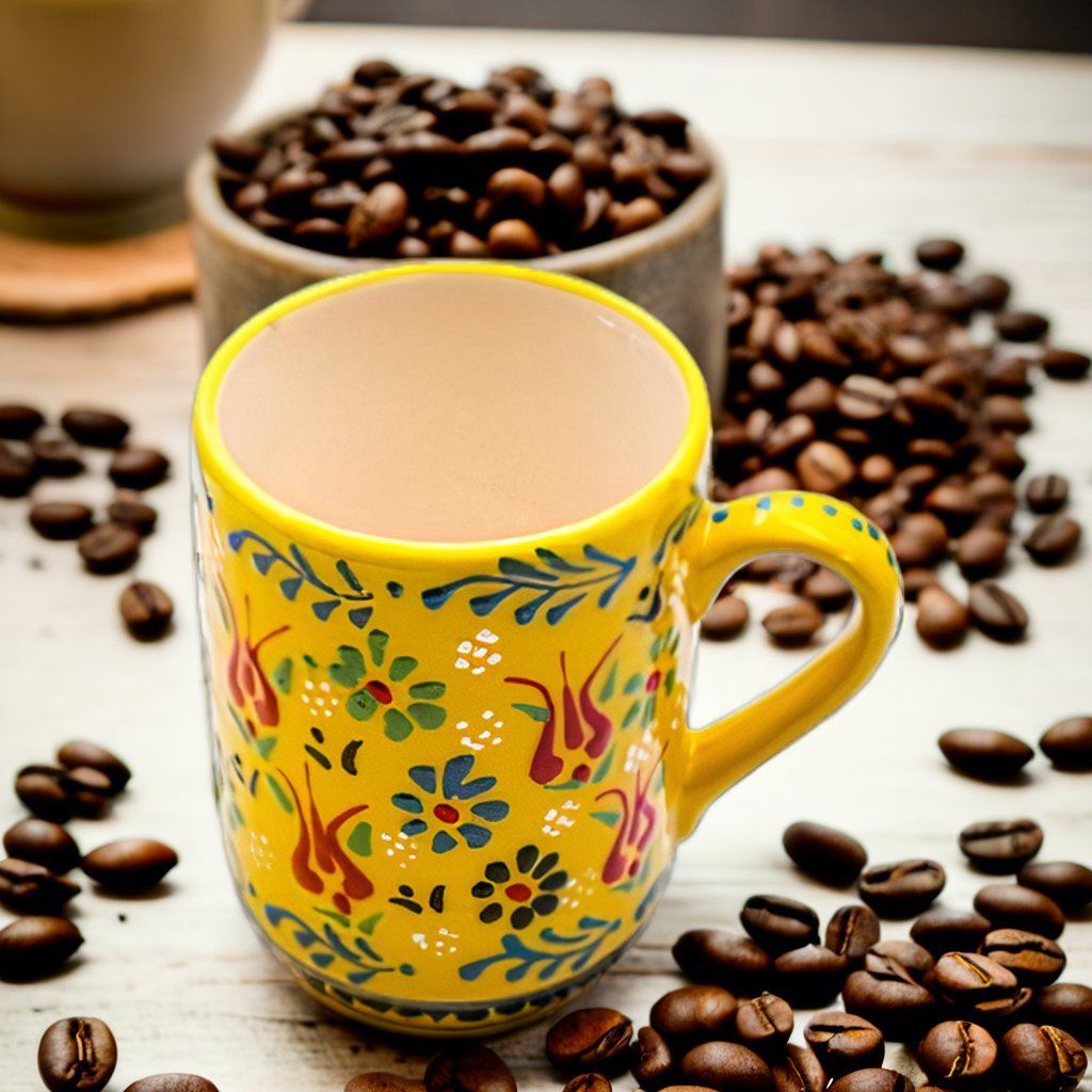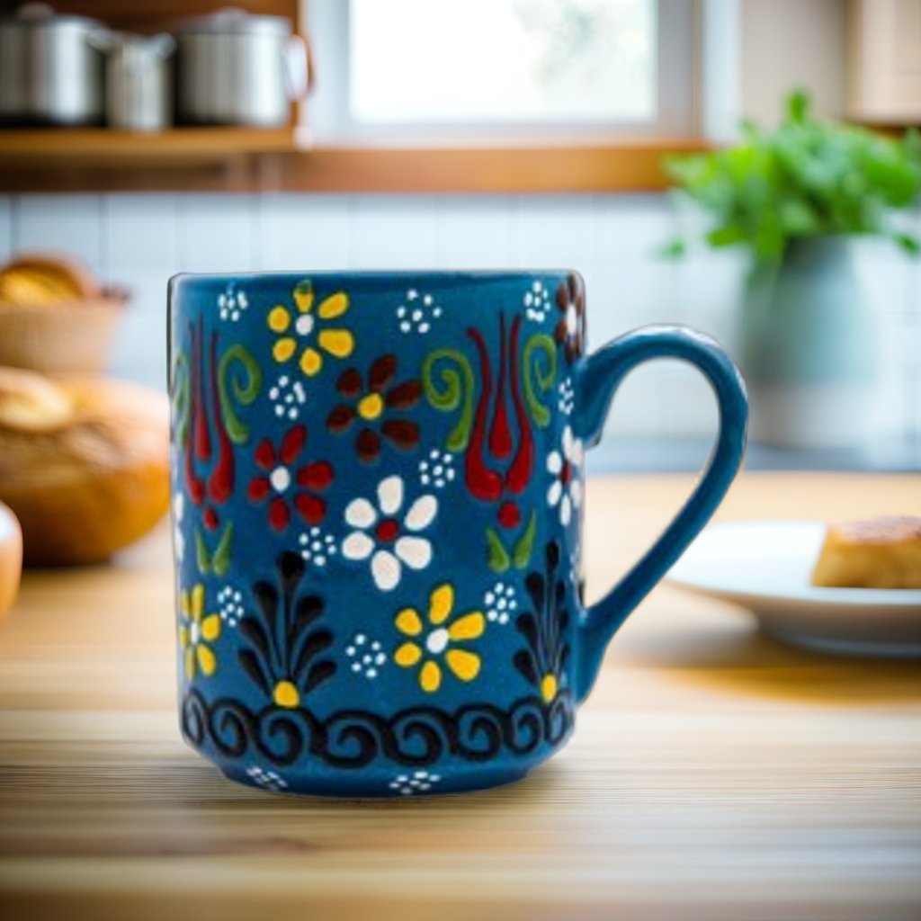 These stunningly beautiful 10 Oz Coffee mugs are handcrafted by skillful Turkish artisans. Buy them individually, or, in a set of 4 to 6 mugs for your family and friends. They are a great addition to every home and a wonderful house- warming gift. Maintain the same bright colors for a long time by simply hand-washing with mild soap and a non-abrasive sponge to keep them looking vibrant for years to come.