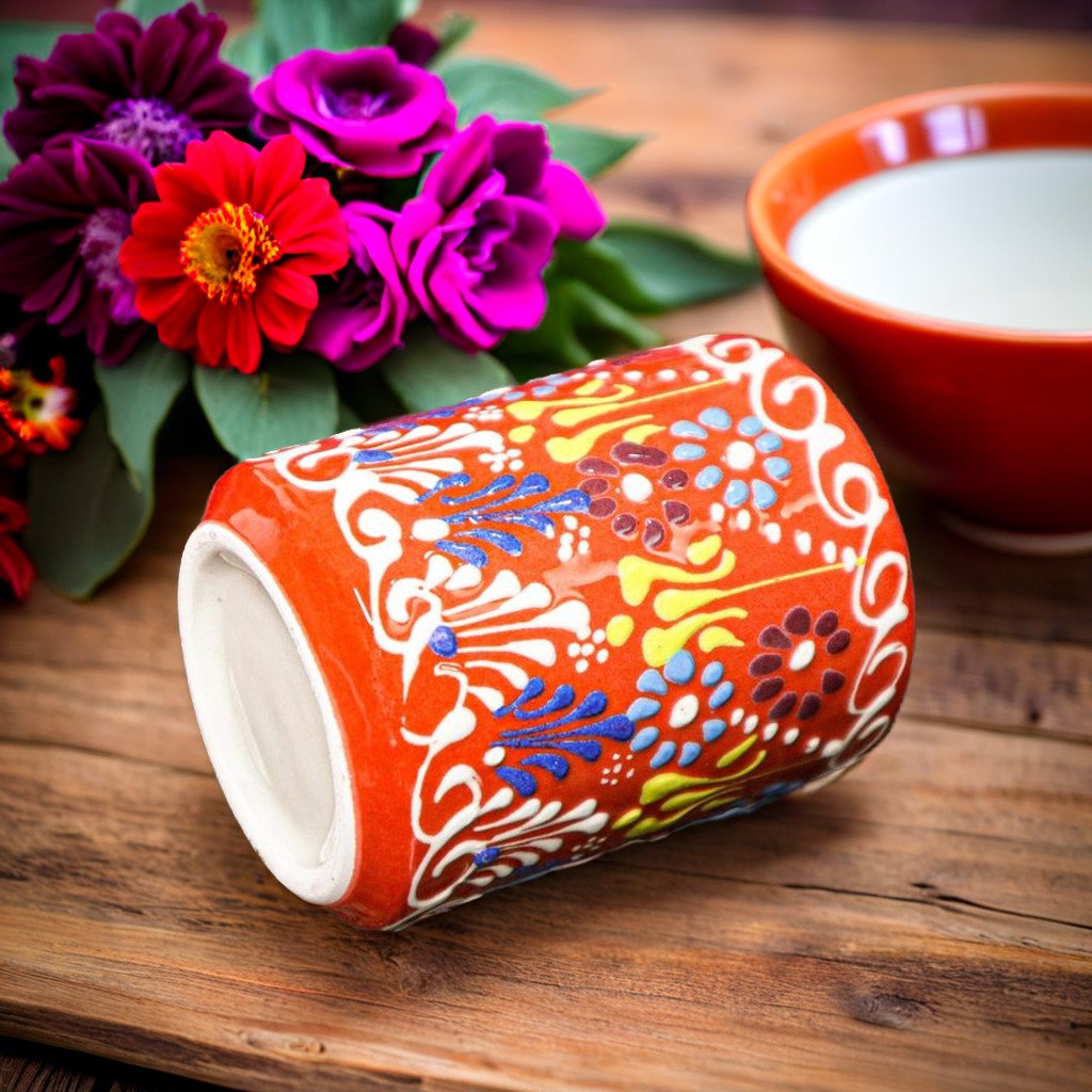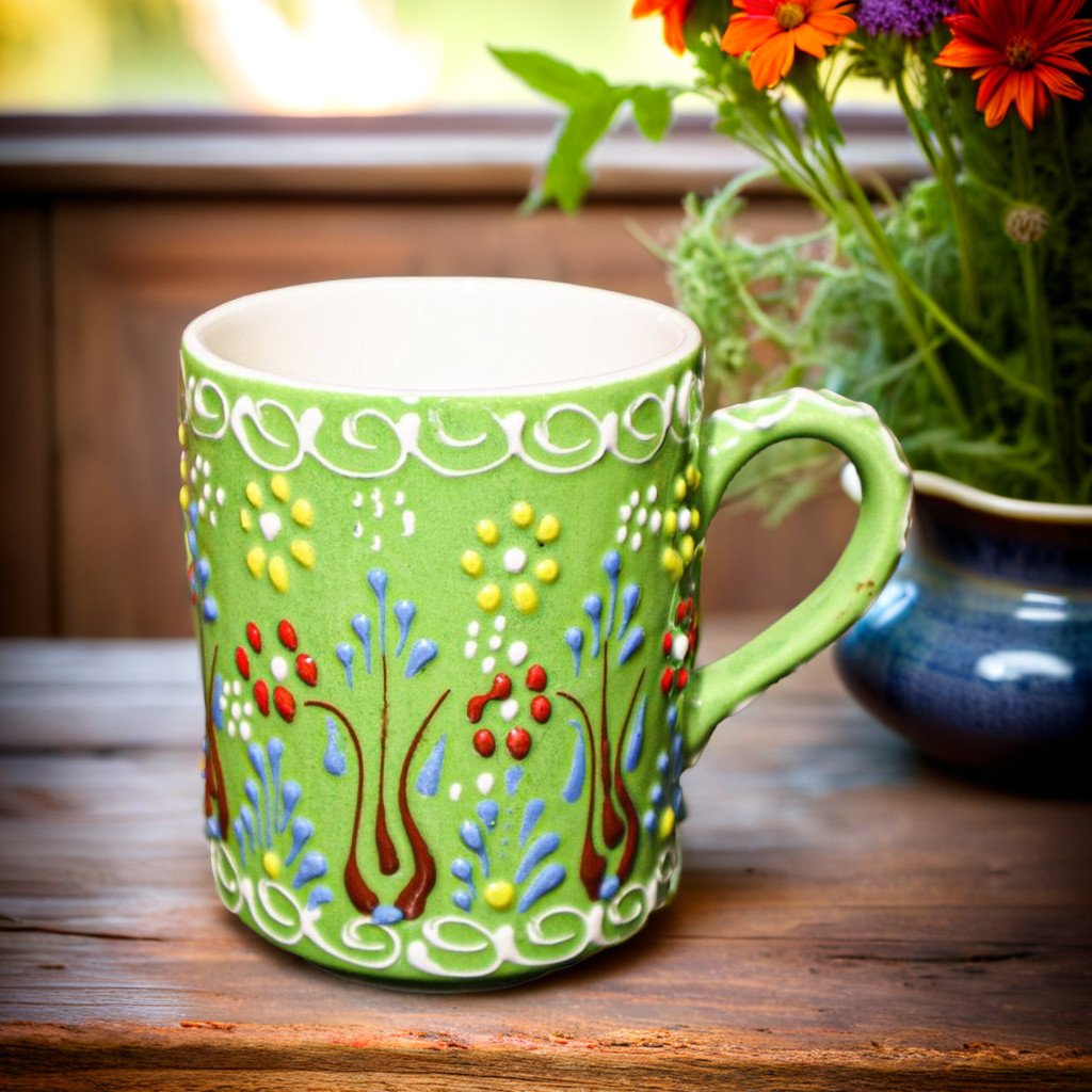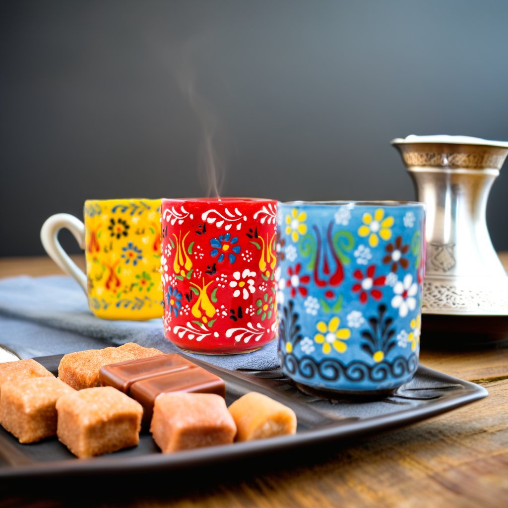 These stunningly beautiful 10 Oz Coffee mugs are handcrafted by skillful Turkish artisans. Buy them individually, or, in a set of 4 to 6 mugs for your family and friends. They are a great addition to every home and a wonderful house- warming gift. Maintain the same bright colors for a long time by simply hand-washing with mild soap and a non-abrasive sponge to keep them looking vibrant for years to come.