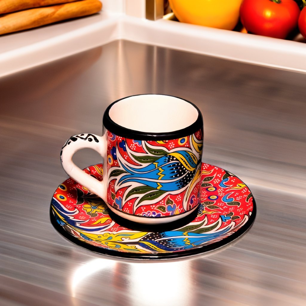 These stunningly beautiful Espresso coffee sets are handcrafted by skillful Turkish artisans. They come in a set of 6 cups and saucers, (all in the same design of your choice).  They are a great addition to every home and a wonderful house warming gift. Maintain the same bright colors for a long time by simply hand-washing with mild soap and a non-abrasive sponge to keep them looking vibrant for years to come.
