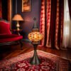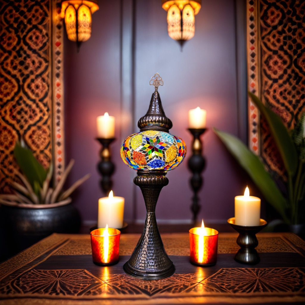 The design of this table lamp is inspired by the minaret of the mosque and the hammered texture of its metal base adds a lot of character. The glass shades are made with hand cut pieces of high-quality glass and beads which are carefully placed together to produce stunning lamp patterns on a blown glass lamp shade. The vibrant color combinations are simply magical and perfect for home or office décor, gifting for weddings, anniversaries, housewarming parties, Mother’s Day and as festive and corporate gifts. These lamps are hand made by experienced Turkish artisans. They create a warm romantic ambiance and add charm and splendor to any room in your home or office. They are 110V and suitable for use in USA and Canada. These lamps are ready to plug in and have an on/off switch. They have an E12 socket and requires 1 LED bulb. (Not included, however, you have the option of requesting your quote with or without 1 x 4 watt, 2700K, E12 base LED chandelier bulb).