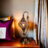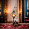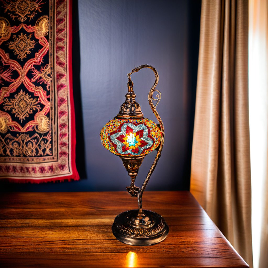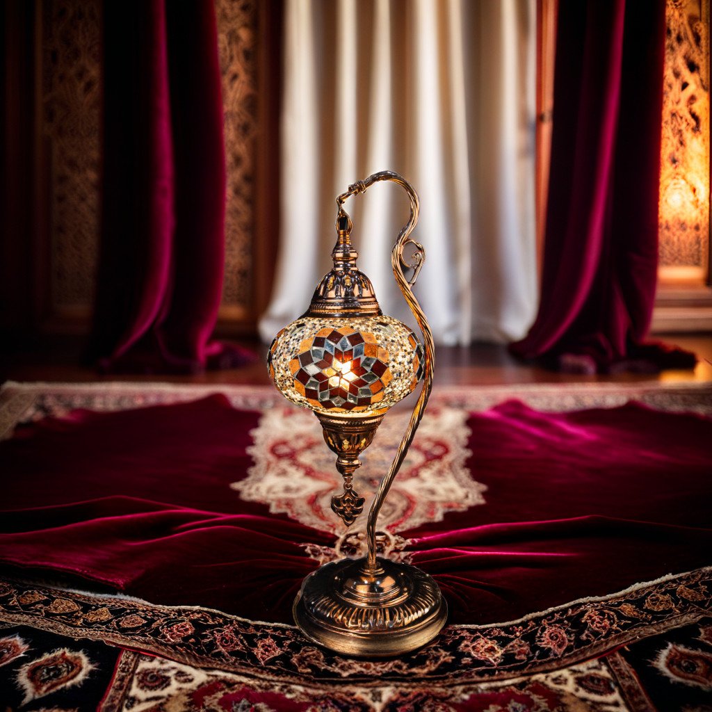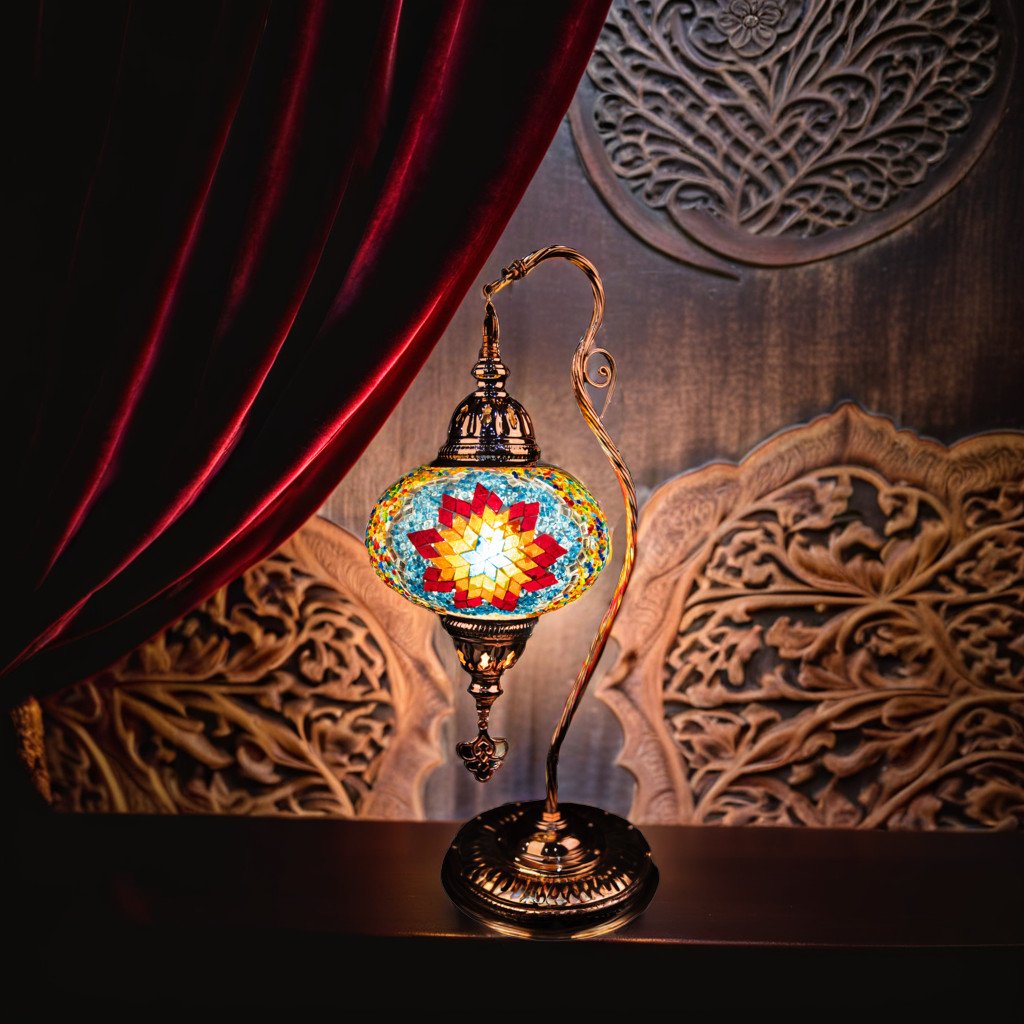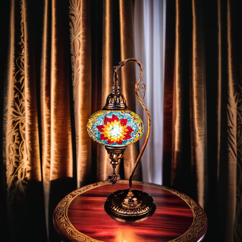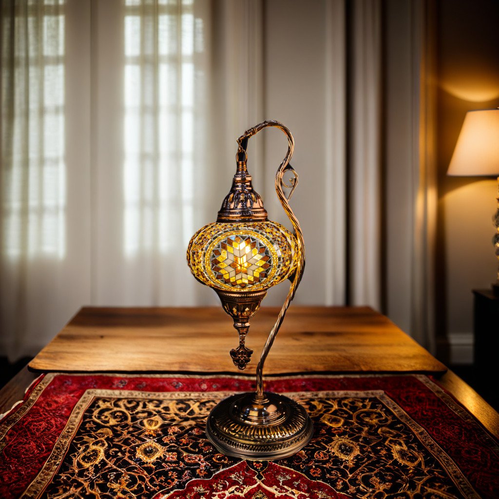 This variation of the traditional Brass base Turkish Swan lamp has a Rose Gold base to add a hint of richness to the décor. They are made with hand cut pieces of high-quality glass and beads which are carefully placed together to produce stunning lamp patterns on a blown glass lamp shade. The vibrant color combinations are simply magical and perfect for home or office décor, gifting for weddings, anniversaries, housewarming parties, Mother’s Day and as festive and corporate gifts. The Rose Gold base Swan lamps are hand made by experienced Turkish artisans. You can customize this Swan Lamp according to your preference and create a unique look by choosing the perfect globe to compliment your décor. They create a warm romantic ambiance and add charm and splendor to any room in your home or office. They are 110V and suitable for use in USA and Canada. These lamps are ready to plug in and have an on/off switch. They have an E12 socket and requires 1 LED bulb. (Not included, however, you have the option of adding 1 x 4 watt, 2700K, E12 base LED chandelier bulb to your quote).