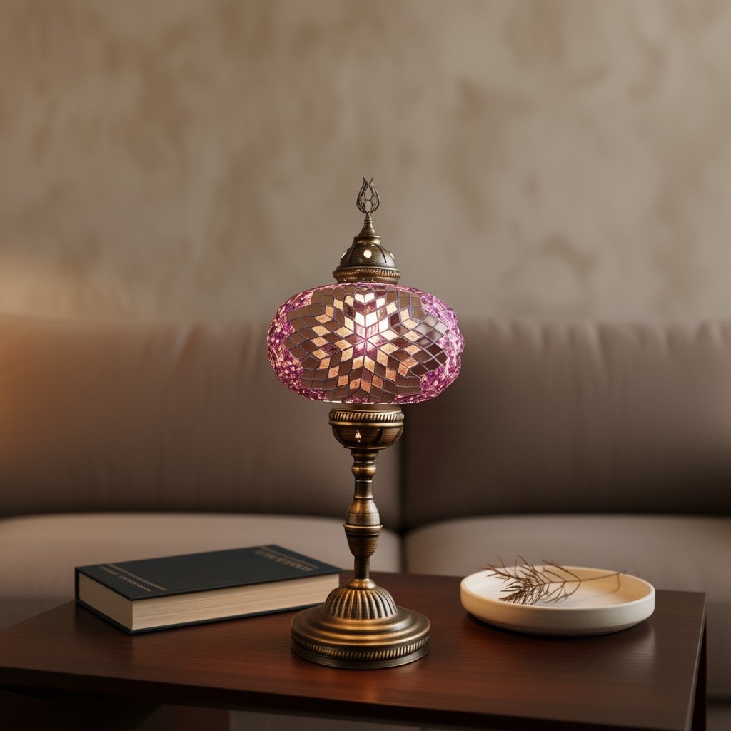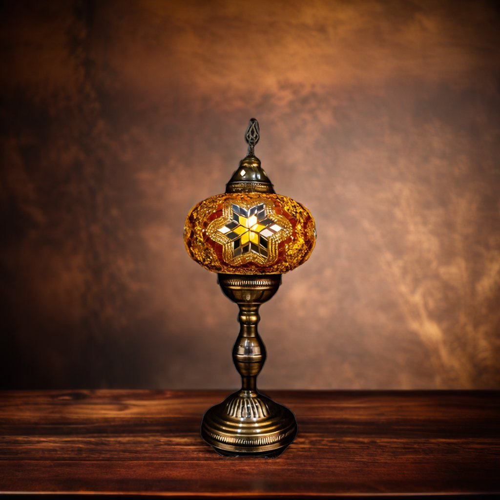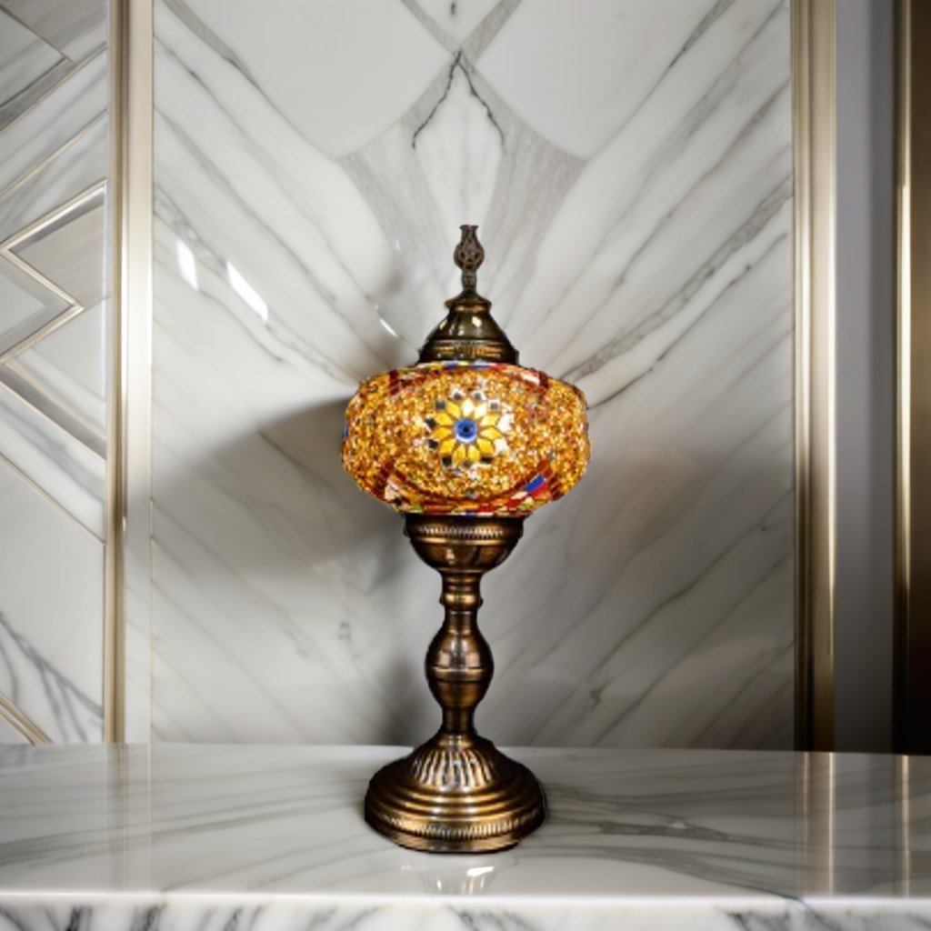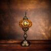 Skillful Turkish artisans make these stunningly beautiful table lamps with hand cut pieces of high-quality glass and beads which are carefully placed together to produce intricate patterns on a blown glass lamp shade. The vibrant color combinations are simply magical and perfect for home or office décor, gifting for weddings, anniversaries, housewarming parties, Mother’s Day and as festive and corporate gifts. They create a warm romantic ambiance and add charm and splendor to any room in your home or office. They are 110V and suitable for use in USA and Canada. These lamps are ready to plug in and have an on/off switch. They have an E12 socket and require 1 LED bulb. (Not included, however, you have the option of adding 1 x 4 watt, 2700K, E12 base LED chandelier bulb to your quote).