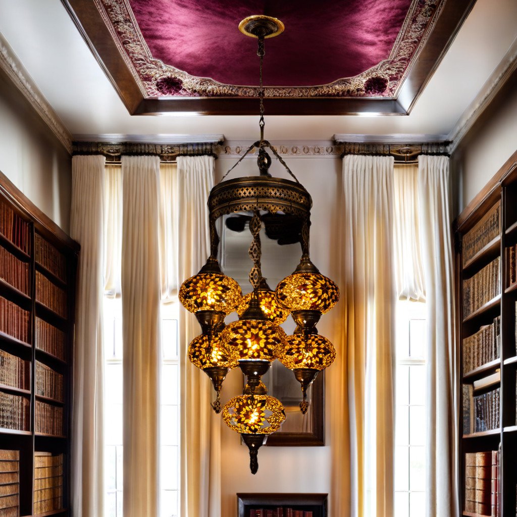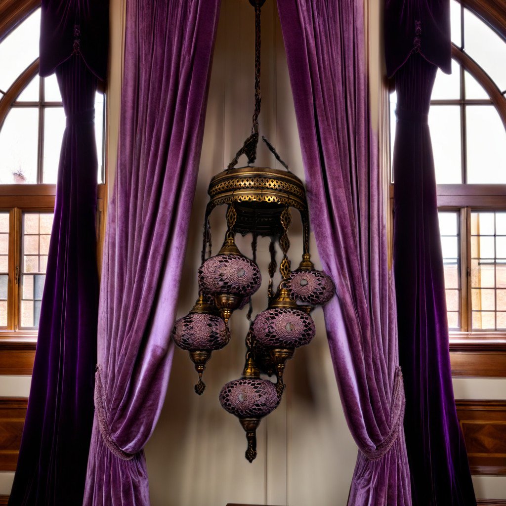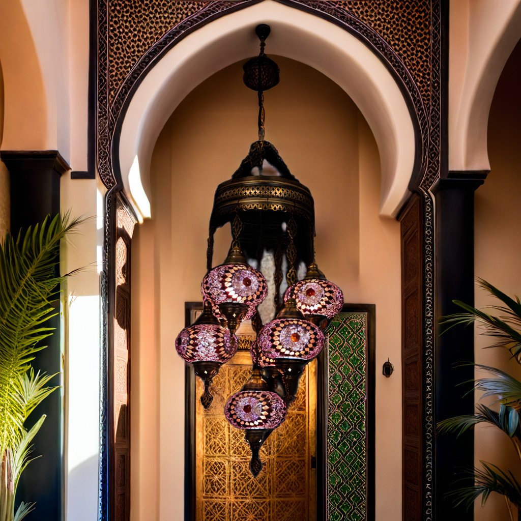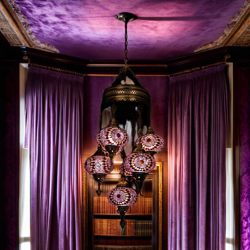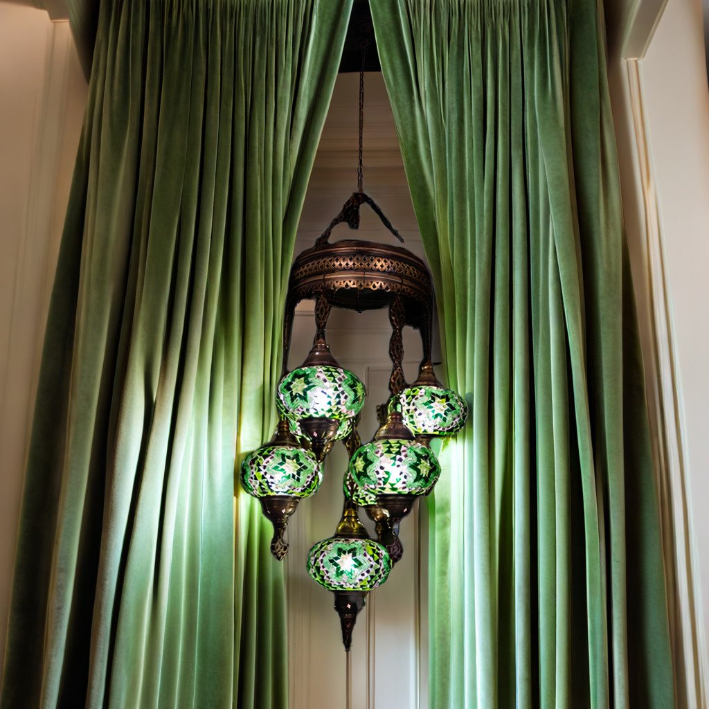 This elegant 7 Globe Chandelier (10″ Globes) has been handcrafted by skillful Turkish artisans. Stunning patterns are created with hand-cut mosaic glass and beads on the globes. Being handcrafted, the beauty in design lies in the minor differences while patterning the globes. You can customize these chandeliers according to your preference by choosing all identical globes or create a unique look by mixing and matching the globes to create your own combination. All chandeliers require E12 base chandelier bulbs (Not inclusive, however, you have the option of adding 7 x 4 watt, 2700K, E12 base LED chandelier bulbs to your quote). These Chandeliers are 110 V and are suitable for use in Canada and USA. The are inclusive of an on-off switch and can be plugged into a wall socket. Alternatively, they can also be hardwired into the ceiling.(Mounting hardware is not included).