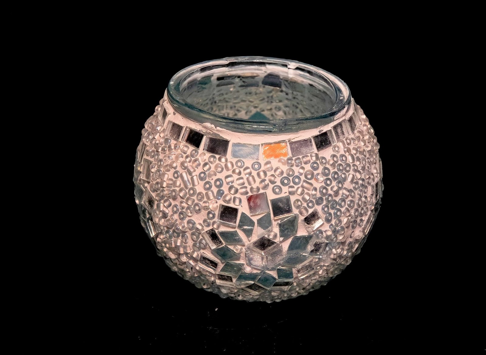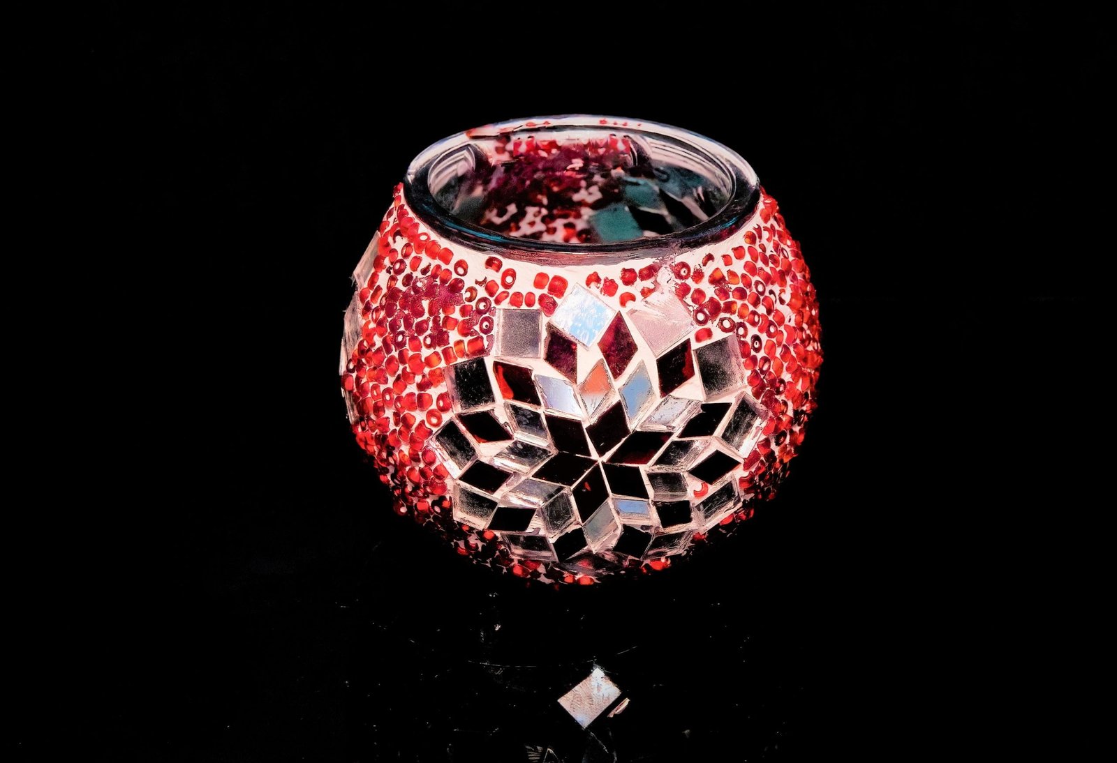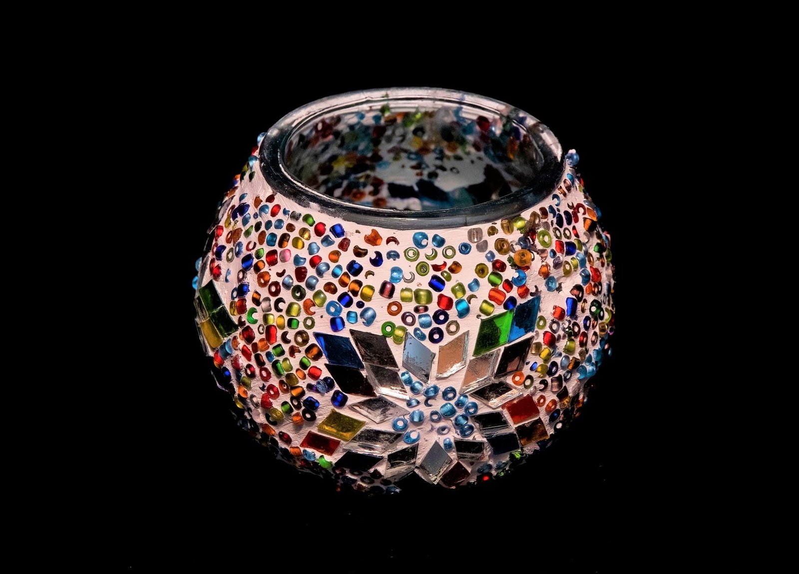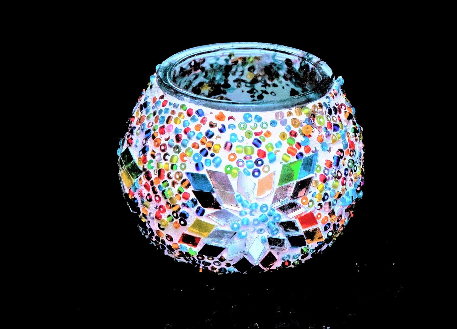 These Turkish mosaic candle holders and handcrafted by skillful Turkish artisans. Hand-cut pieces of glass, mirrors, and beads are put together on handblown glass candle votives. These beautiful pieces of art are very attractive and are available in many designs and bright colors. Create a romantic ambiance by adding a splash of color to your dinner or coffee table. Create a