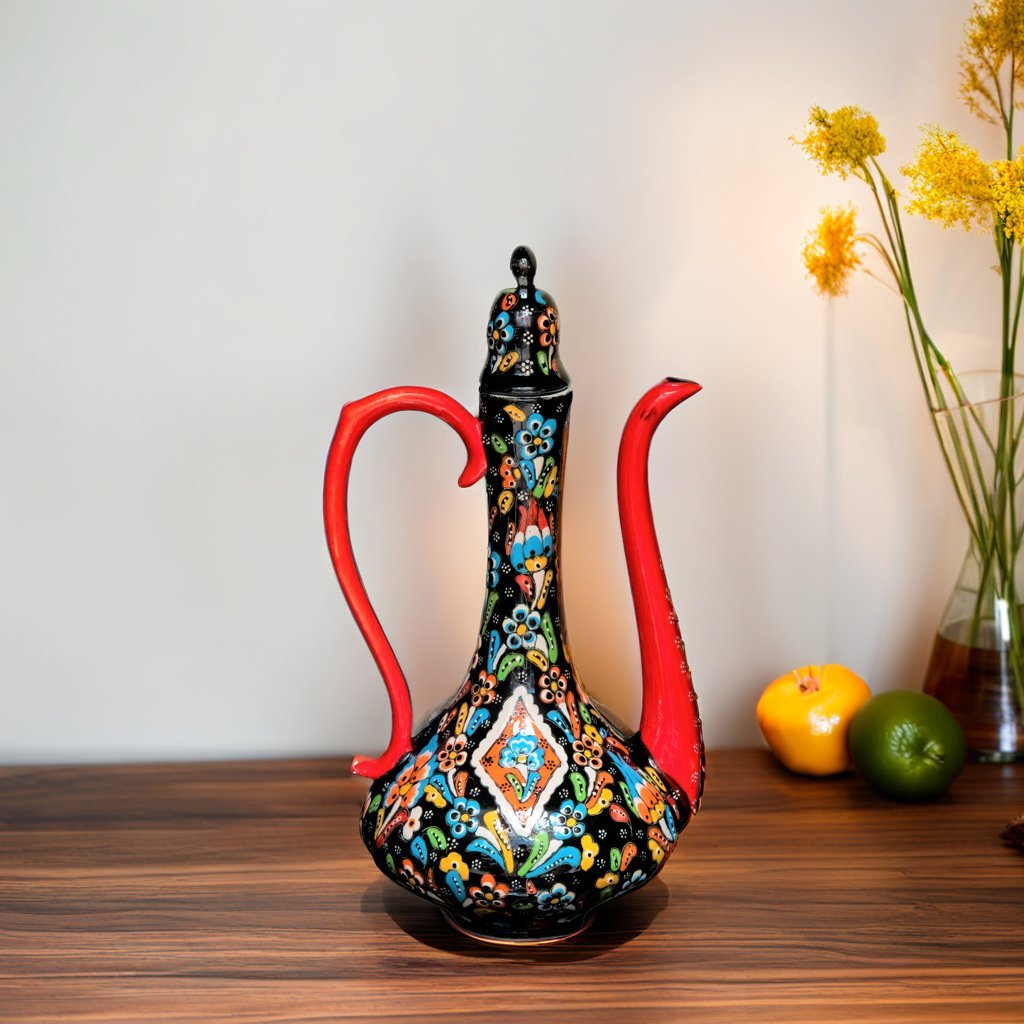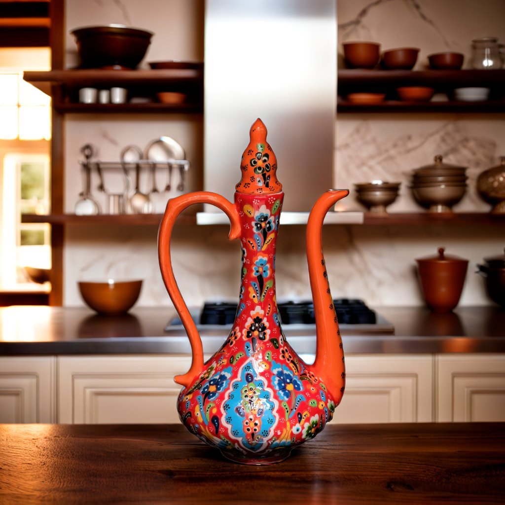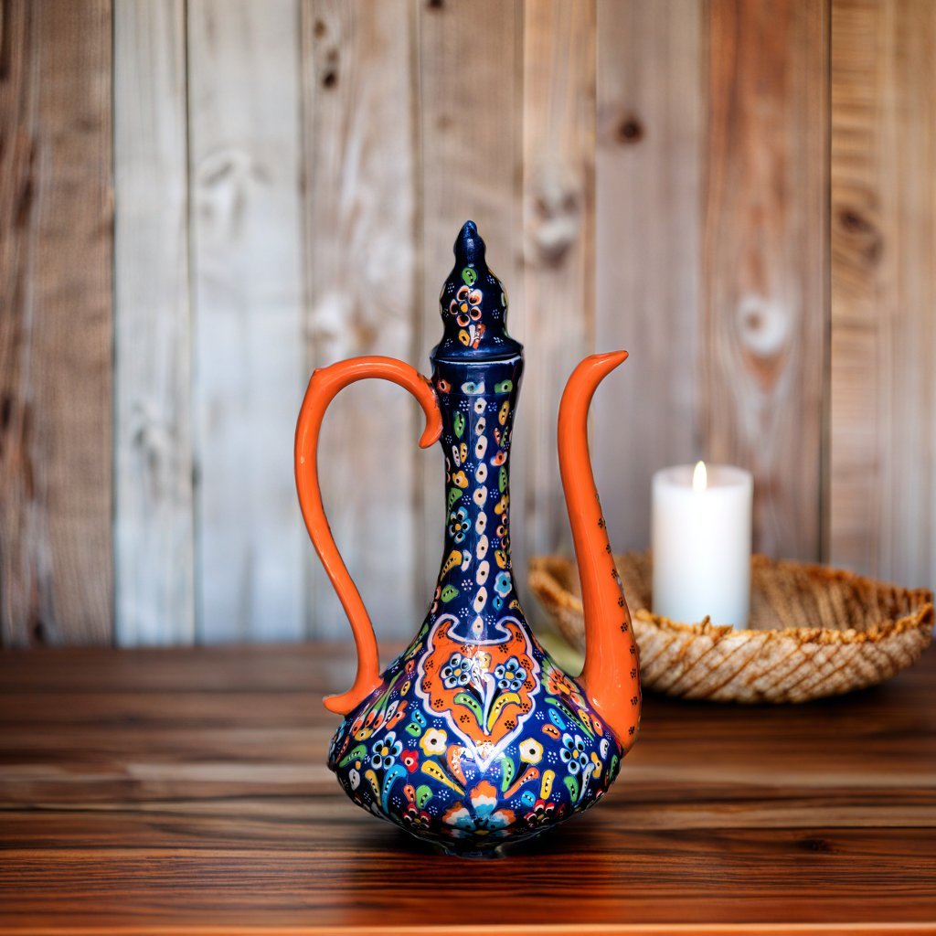 These beautiful ceramic Kettles are handmade in Turkey. They are not only decorative, but can also be used for serving beverages like tea or coffee . The raised texture of the hand painted patterns adds a lot of character to these beautiful pieces of art. They are made using patterns and methods of traditional Iznik Turkish ceramic art of the 16th Century. The lead- free bright colorful glazes are heat resistant and hand washable. They make beautiful décor pieces. They are a unique gift item for any occasion.
