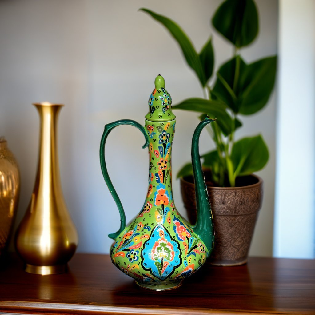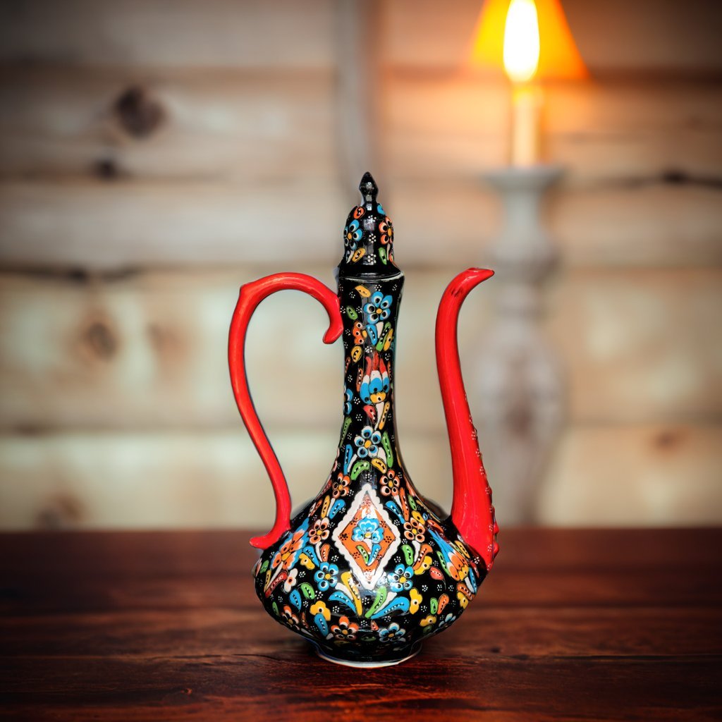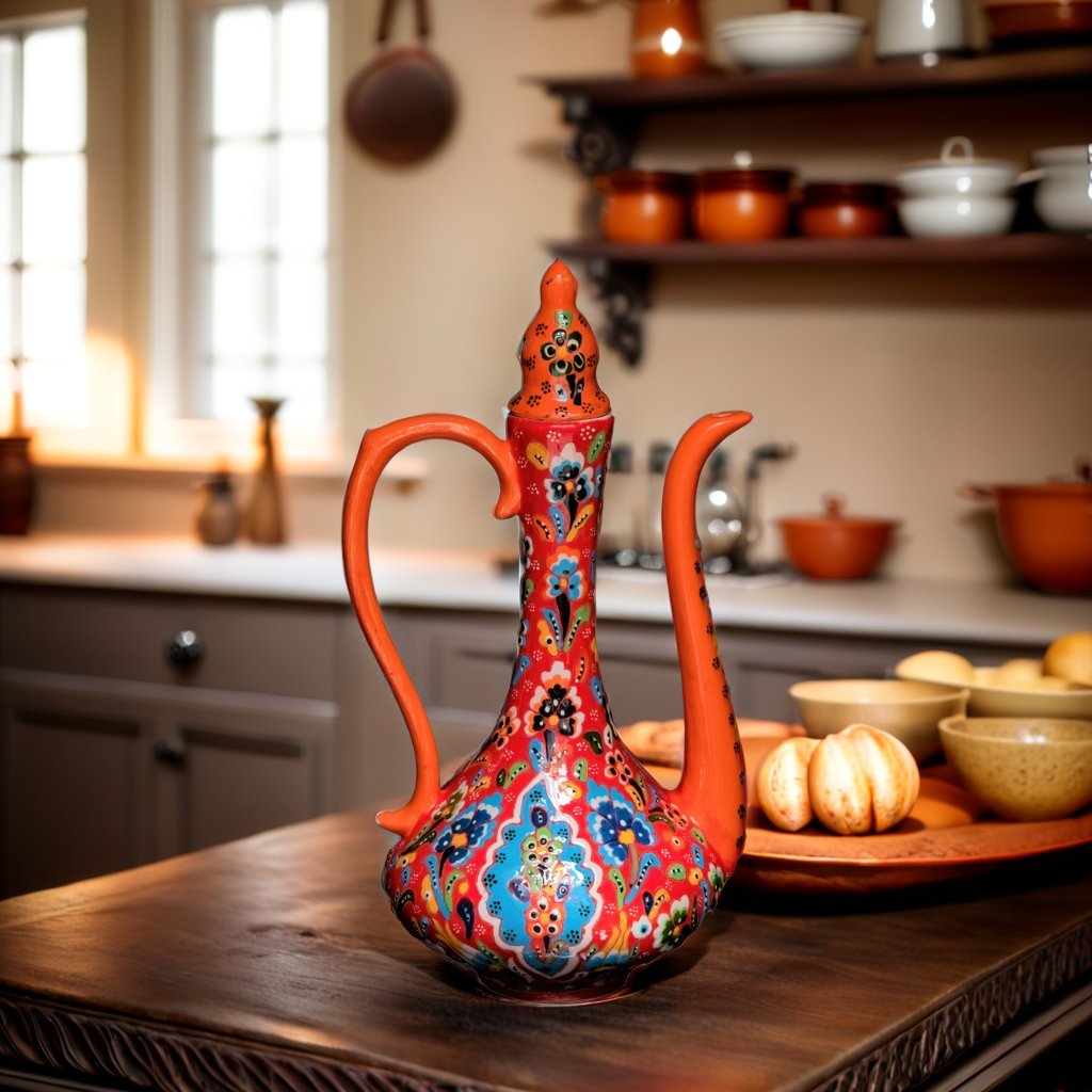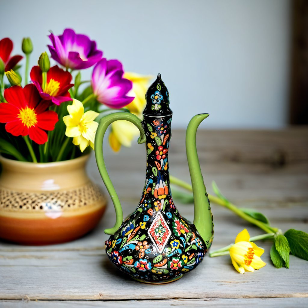 These beautiful ceramic Kettles are handmade in Turkey. They are not only decorative, but can also be used for serving beverages like tea or coffee . The raised texture of the hand painted patterns adds a lot of character to these beautiful pieces of art. They are made using patterns and methods of traditional Iznik Turkish ceramic art of the 16th Century. The lead- free bright colorful glazes are heat resistant and hand washable. They make beautiful décor pieces. They are a unique gift item for any occasion.