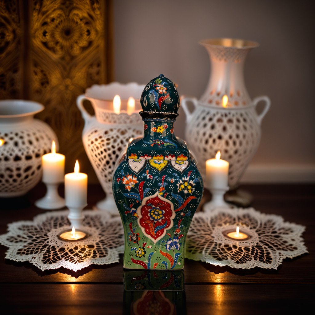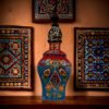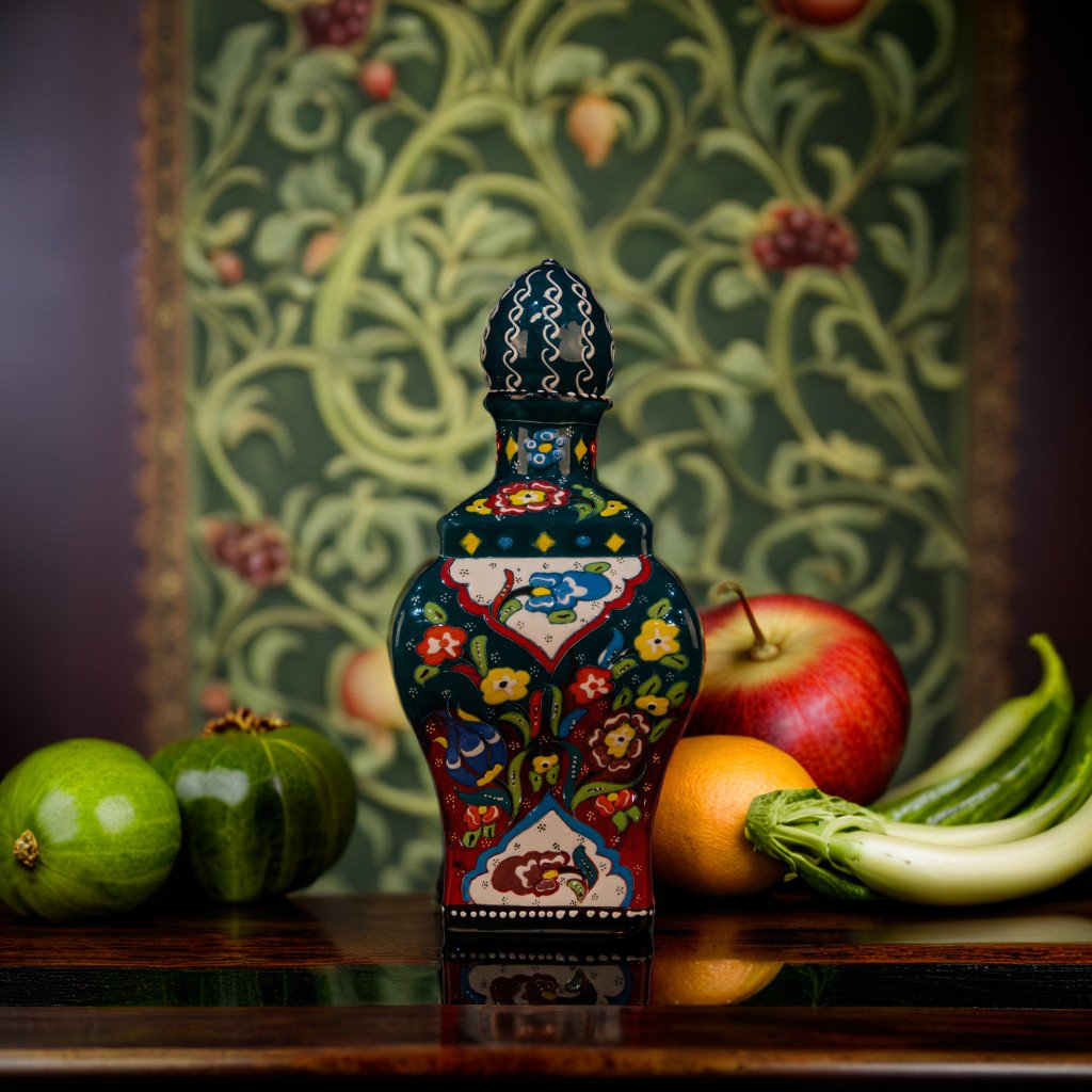 These beautiful decorative ceramic Decanters are handmade in Turkey. The intricate designs and bold and vibrant colours with the raised texture of the hand painted patterns adds to the charm and character of this beautiful handcrafted masterpiece. They are made using patterns and methods of traditional Iznik Turkish ceramic art of the 16th Century. The lead- free bright colorful glazes are heat resistant and hand washable. They make beautiful décor pieces. They are a unique gift item for any occasion.