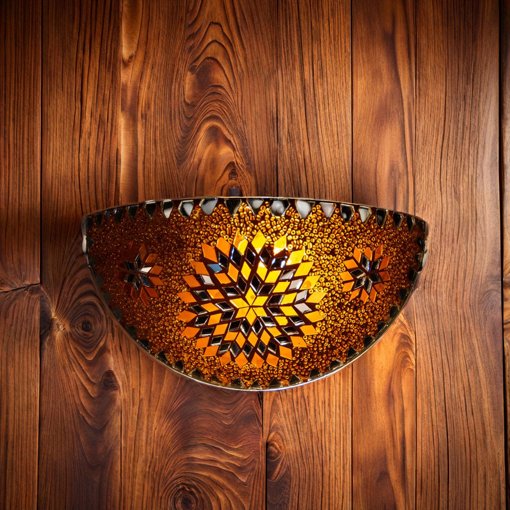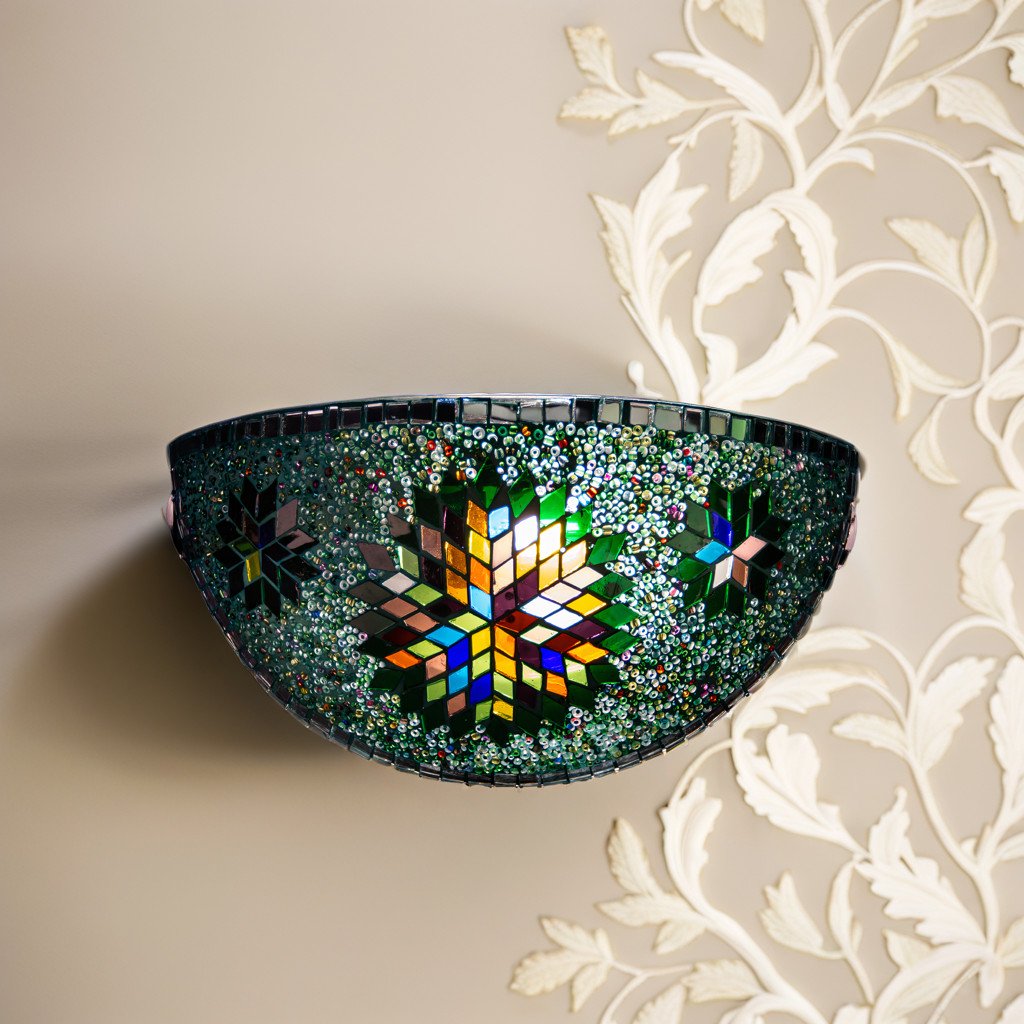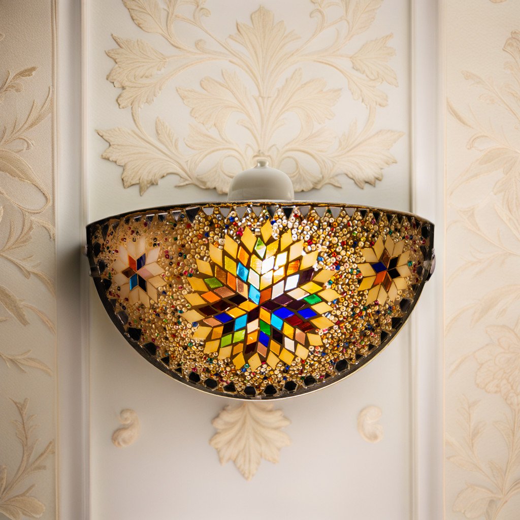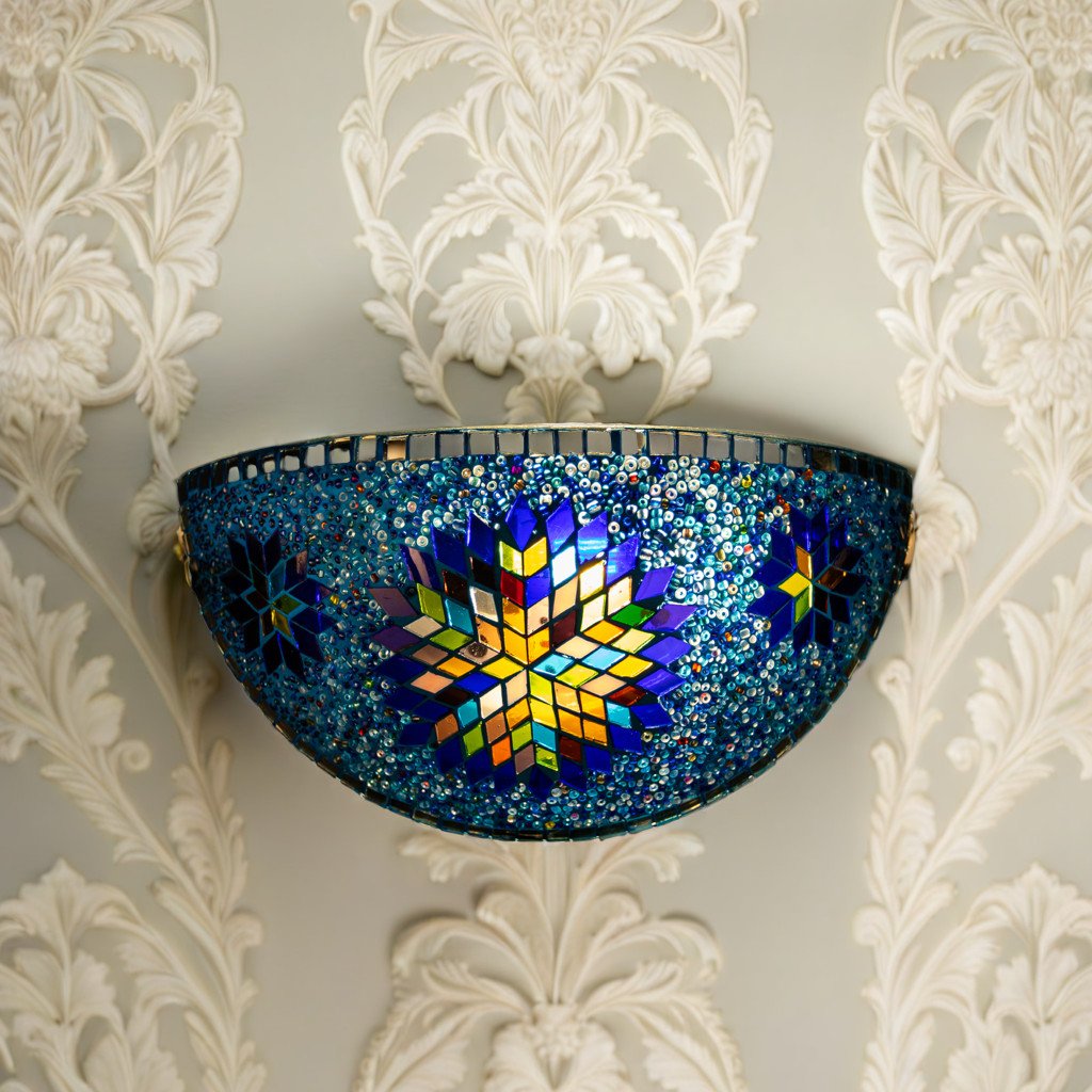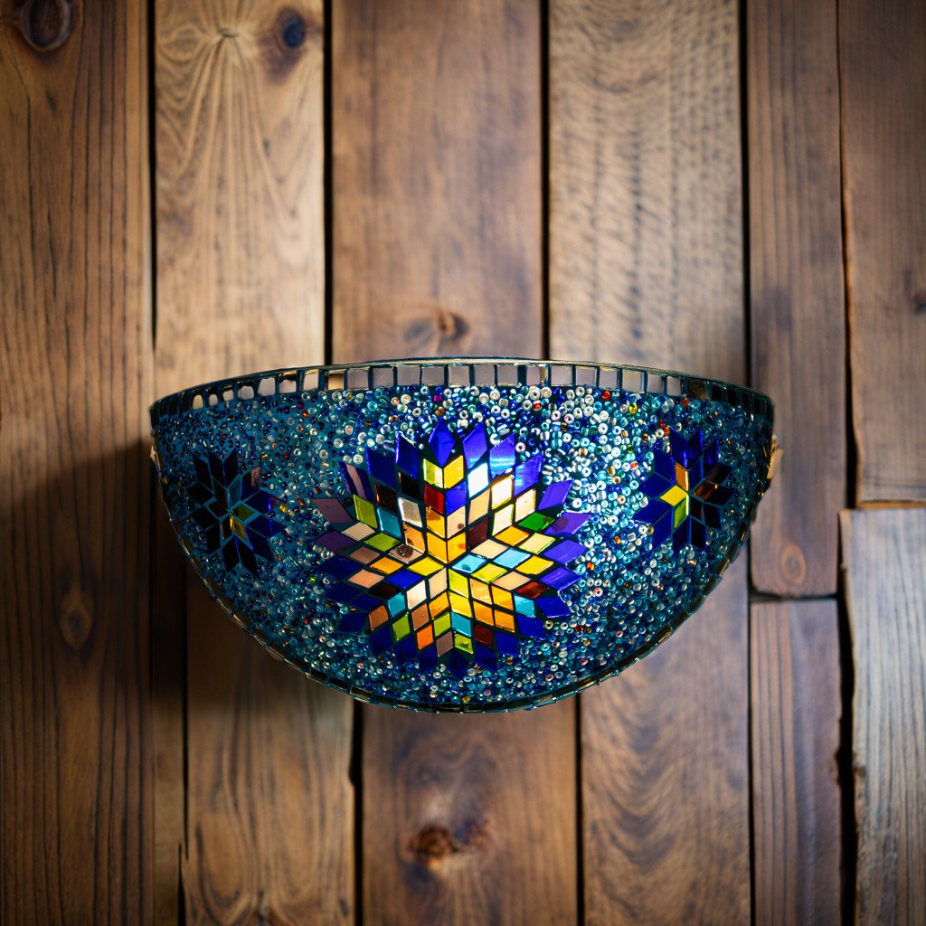 This stunning Half Moon Wall Sconce is artistically handcrafted by skillful Turkish artisans. Beads and mosaic mirror work have been meticulously put together to create beautiful patterns on this wall sconce. Create a romantic ambiance in your bedroom, a statement in your walkway, on your porch, or in your stairway. You can also adorn and beautify your commercial spaces like offices and restaurants. It is a beautiful home décor item to gift to your loved ones. The fixture needs to be hard-wired into the wall socket with easily available wood or drywall screws( Mounting hardware is not included)