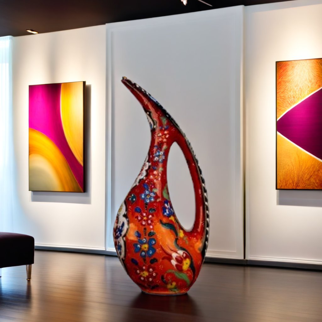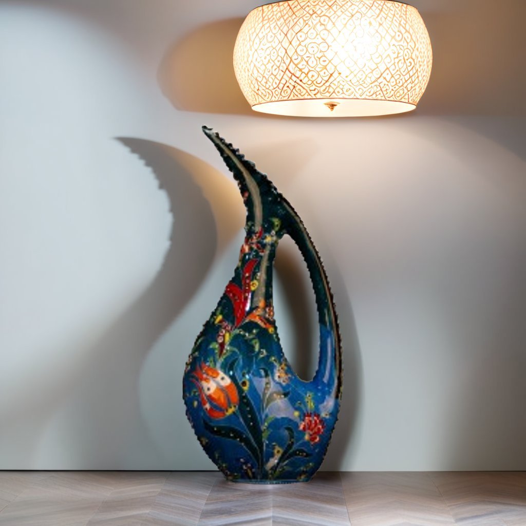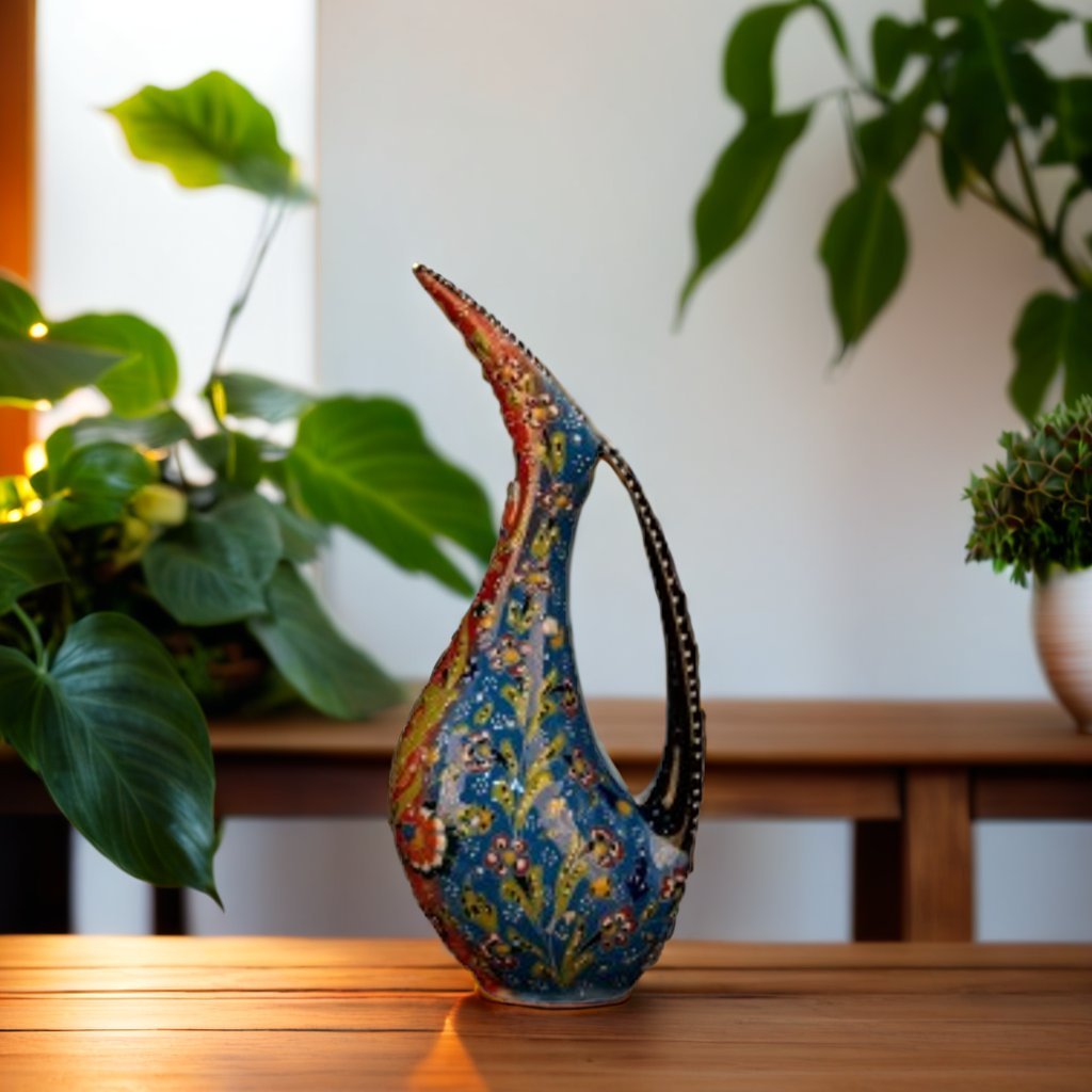 These beautiful ceramic Pelican shaped vases are handmade in Turkey. They are not only decorative, but can double up as a jug for serving gravies and drinks. The raised texture of the hand painted patterns adds a lot of character to these beautiful pieces of art. They are made using patterns and methods of traditional Iznik Turkish ceramic art of the 16th Century. The lead- free bright colorful glazes are heat resistant and hand washable. They make beautiful décor pieces. They are a unique gift item for any occasion.