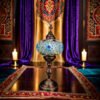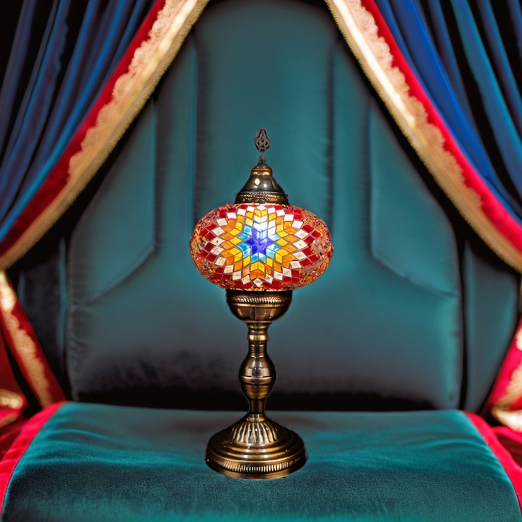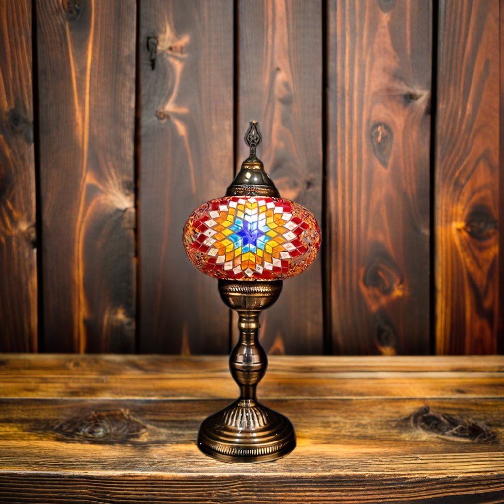 Skillful Turkish artisans make these stunningly beautiful table lamps with hand cut pieces of high-quality glass and beads which are carefully placed together to produce intricate patterns on a blown glass lamp shade. The vibrant color combinations are simply magical and perfect for home or office décor, gifting for weddings, anniversaries, housewarming parties, Mother’s Day and as festive and corporate gifts. They create a warm romantic ambiance and add charm and splendor to any room in your home or office. They are 110V and suitable for use in USA and Canada. These lamps are ready to plug in and have an on/off switch. They have an E12 socket and require 1 LED bulb. (Not included, however, you have the option of adding 1 x 4 watt, 2700K, E12 base LED chandelier bulb to your quote).