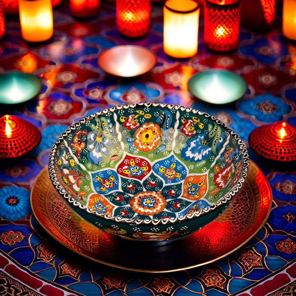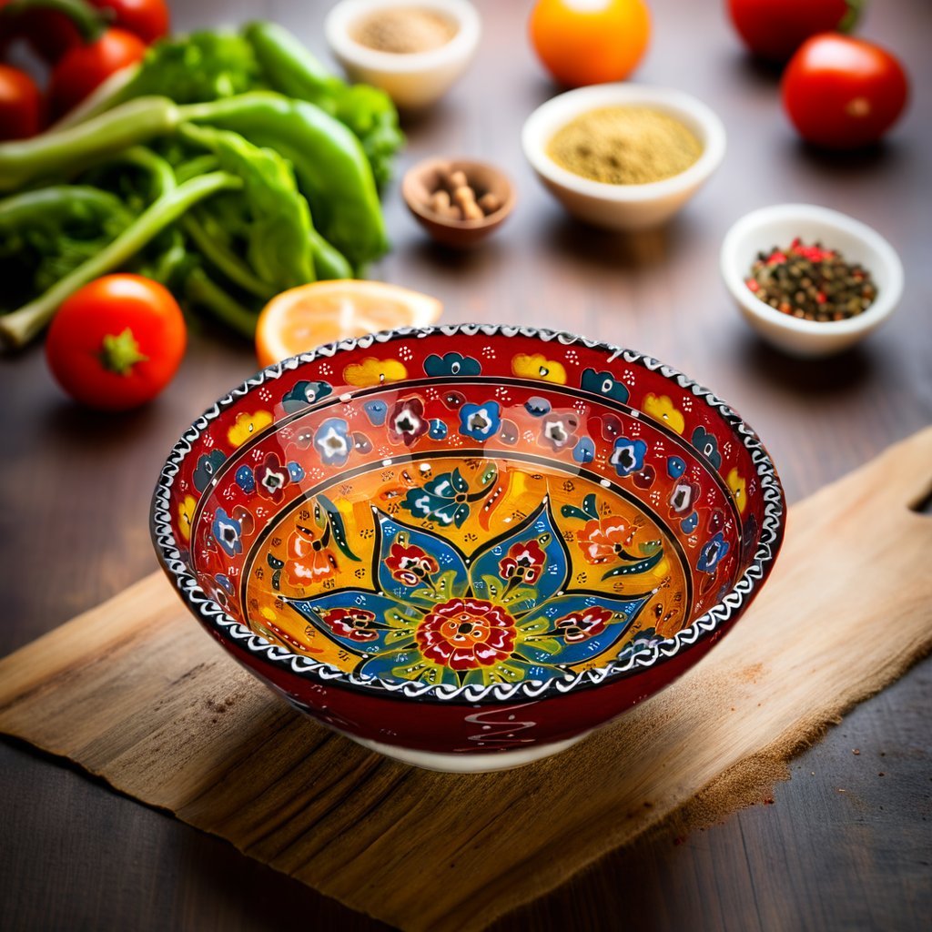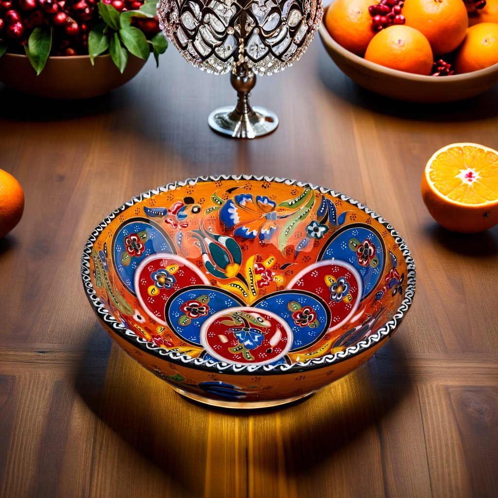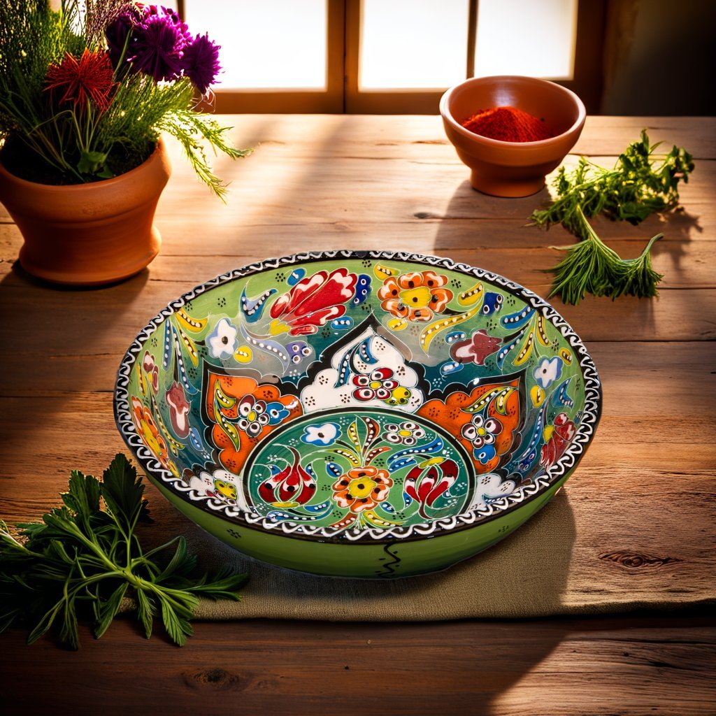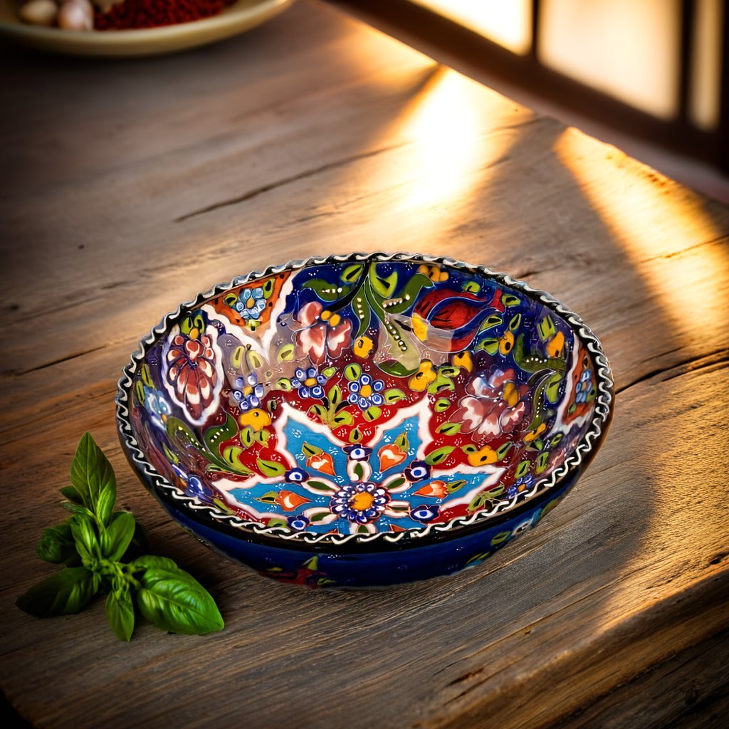 These Decorative Round Ceramic Turkish Bowls (20 cm) are handcrafted by skillful Turkish artisans. These brightly colored beautiful pieces of art are very attractive in design and can be used in your kitchen or dining table for serving snacks like nuts or seeds, condiments or dips, cereal, or soup. You could use them to even place your keys or change on your entryway console table. A set of two to six bowls in either the same color or mix and match designs would make an ideal gift for a loved one. They are easily stackable and a breeze to clean. Just hand wash with mild soap and a non-abrasive sponge to maintain its beauty and vibrant colors for years to come.